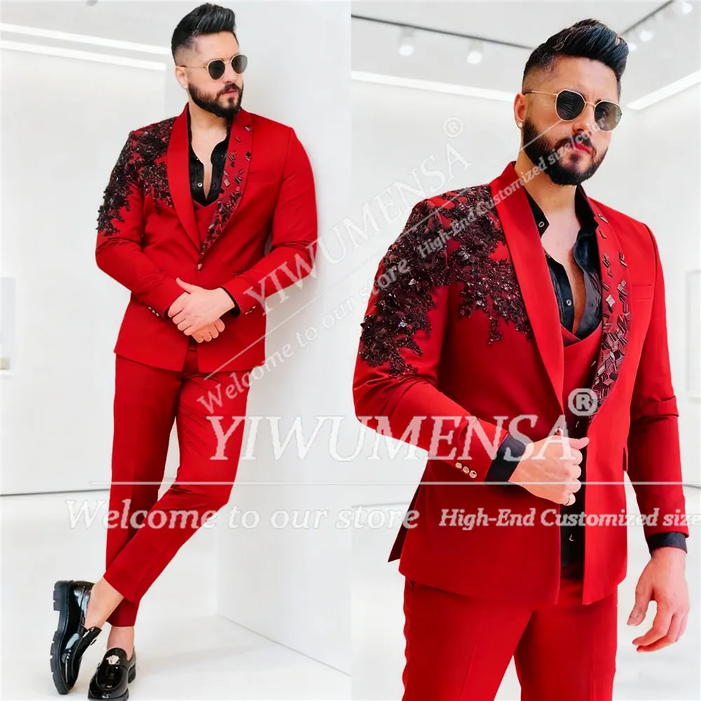 Luxus Kristalle Perlen Anzüge Männer 3 Stück Sets Schal Revers Prom Blazer Angepasst ...