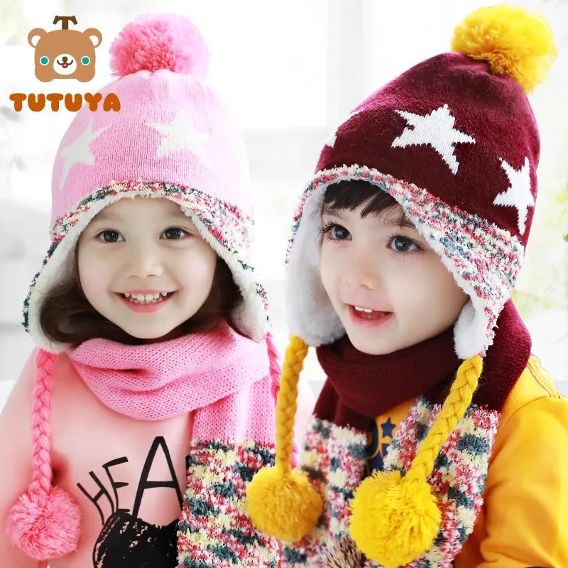 2-teiliges Kindermütze-Schal-Set, gestrickt mit Samtgarn, Kopf...