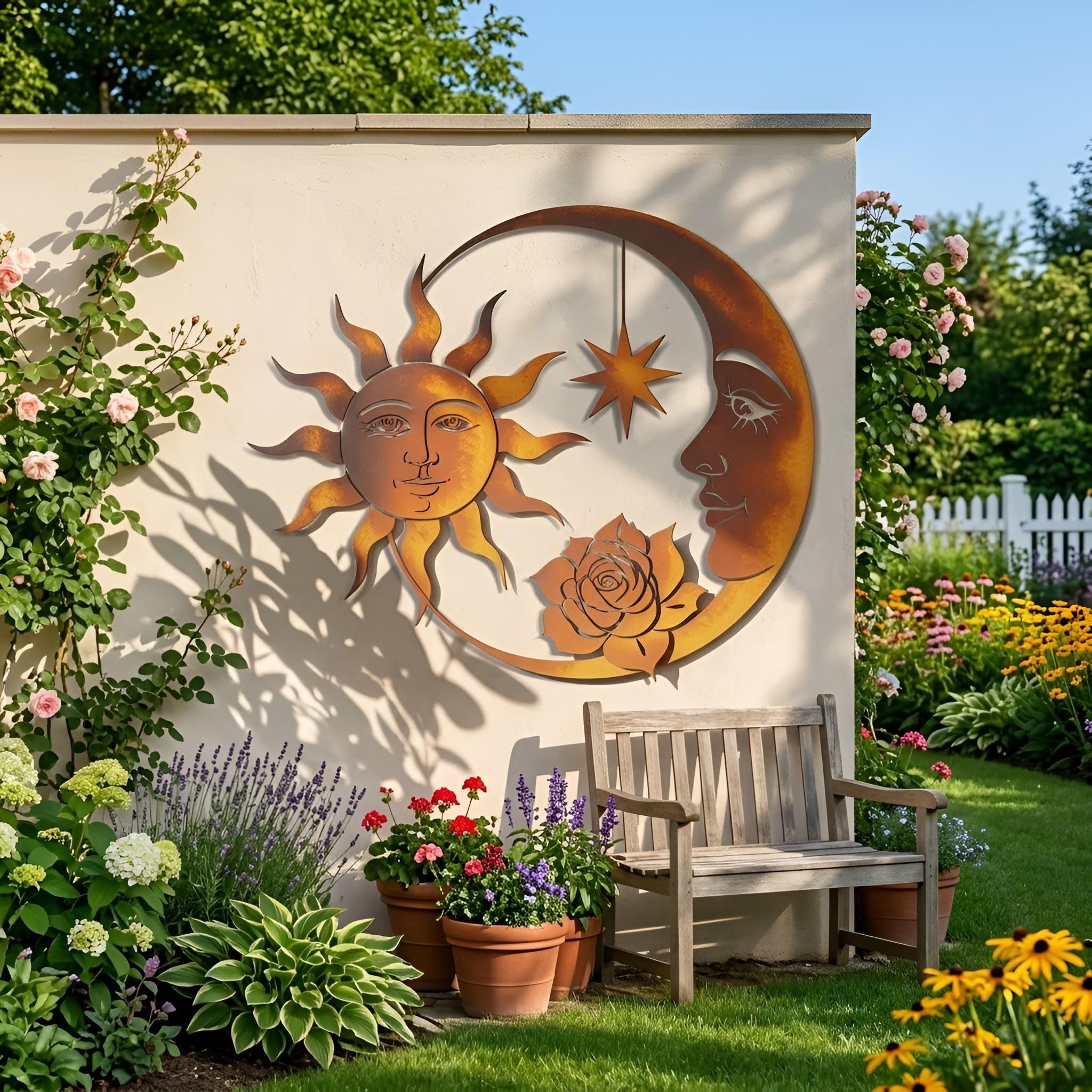 Sun Moon Metal Wall Art, Celestial Wall Decor, Boho Outdoor Wall Ha...