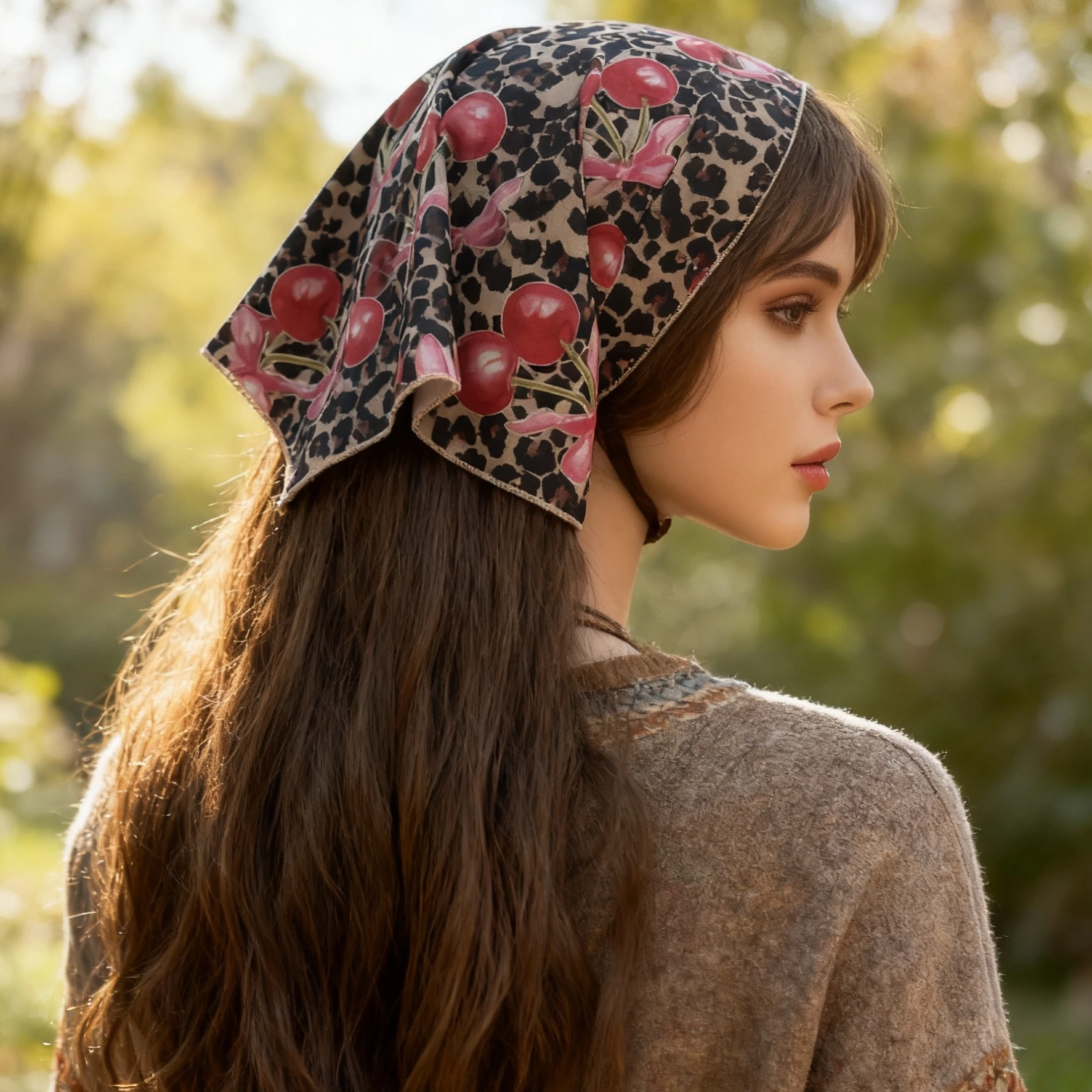 Retro-Seidenimitat, quadratischer Schal, doppelseitiger Druck, Hals...