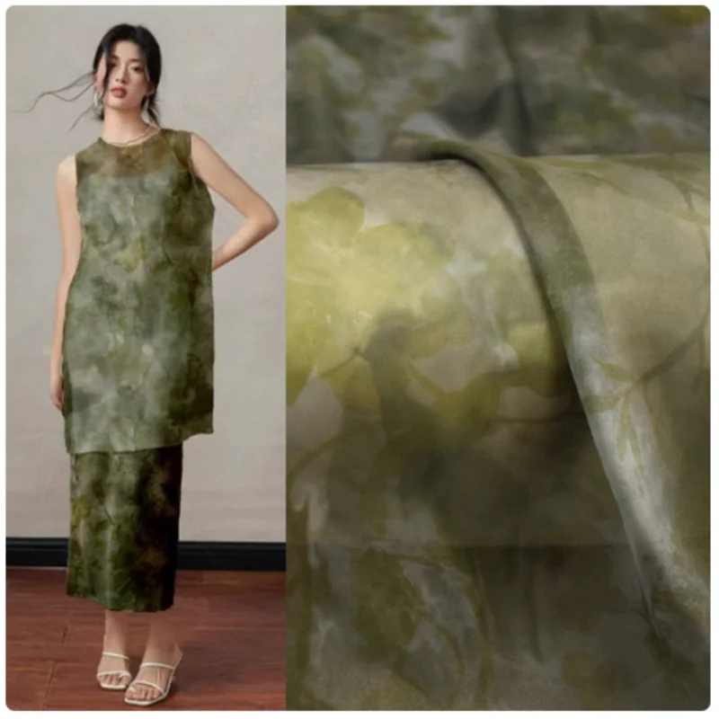 Retro Army Green Smudge Big Flower Chiffon Stoff, Kleid, Cheongsam, Han-Stoff-Nähtuch, superd&u...
