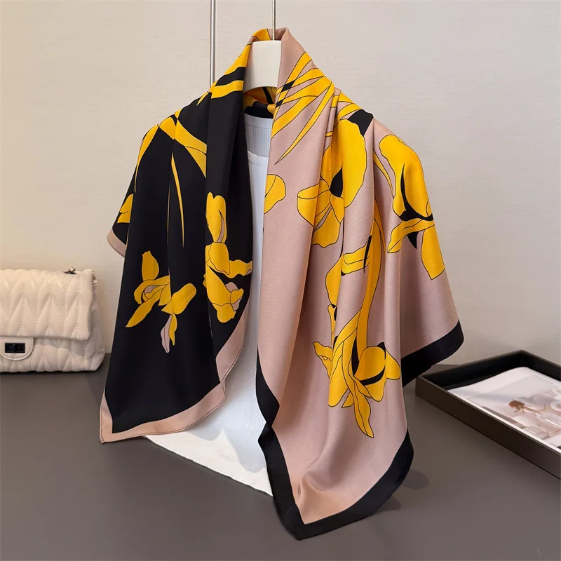 Luxus Seide Quadrat Schals Für Frauen 90*90CM Weiche Fleck Hal...