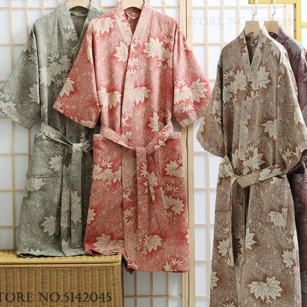 100 % Baumwolle Paar Bademantel Kimono Kleid japanischen Stil Jacquard Robe Home Kleid mit Tasche lo...