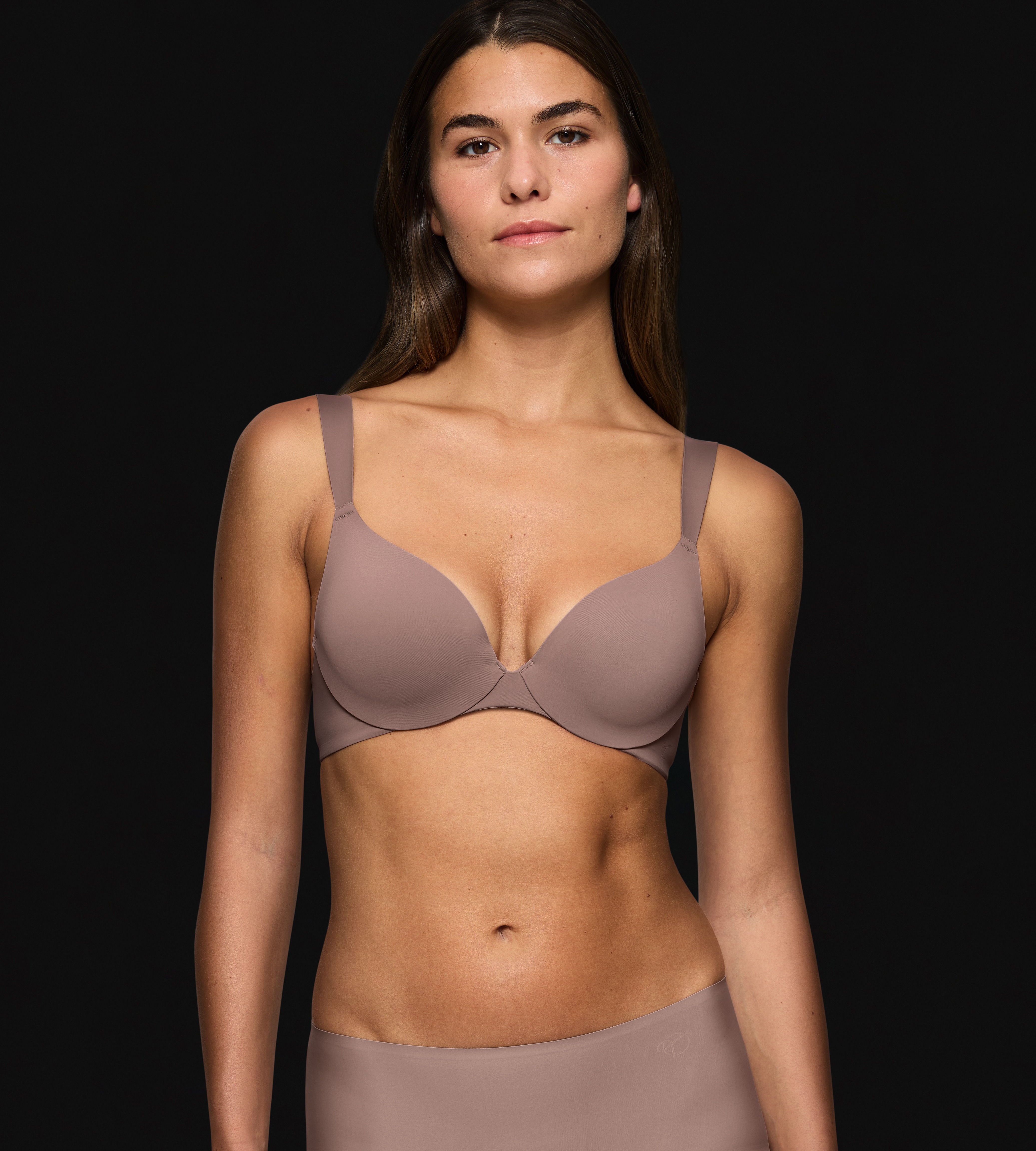 Ein tief geschnittener gefütterter Lift-up-BH mit flexiblem Bügel und speziellen zentriere...