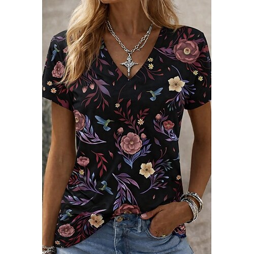 Damen T Shirt Druck Blumen Grafik Sonnenblume Vintage Lässig B...
