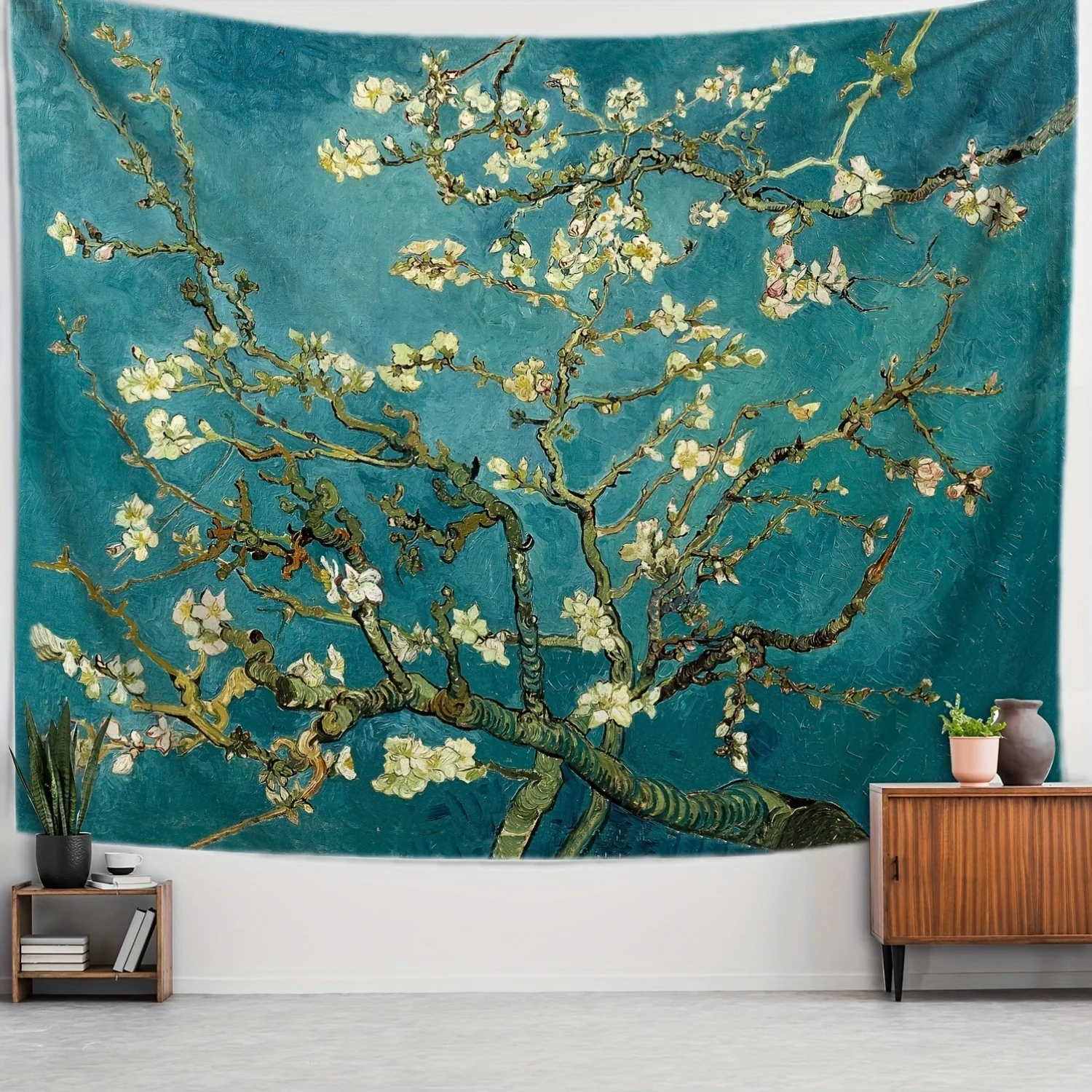 Mandelblüte Van Gogh Polyester Wandteppich Lebendige künstlerische Wanddekoration Wohnzimm...