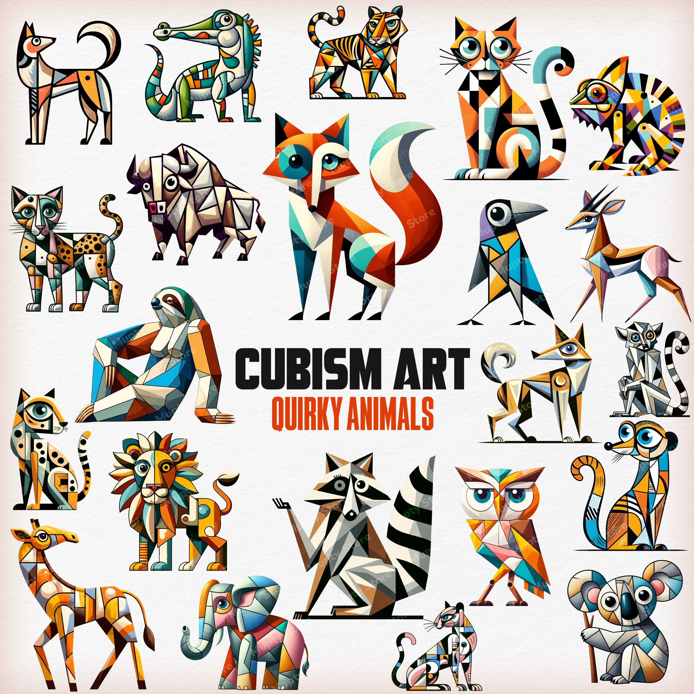 Kubismus Kunst schrullige Tiere, Tiere Kunstdruck, Kubismus Kunst T...