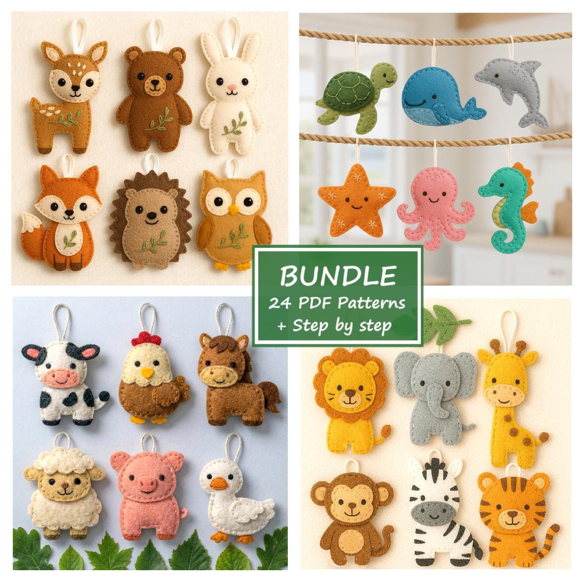 24 Filz Tier Muster Bundle, Woodland Ocean Farm Safari Tier Ornamen...