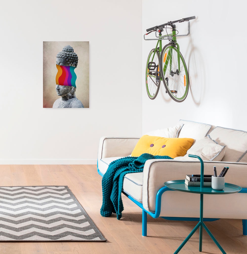 Eine moderne Illustration der Buddha-Statue zeigt, wie cool Stilbruch aussehen kann. Das Wandbild f&...