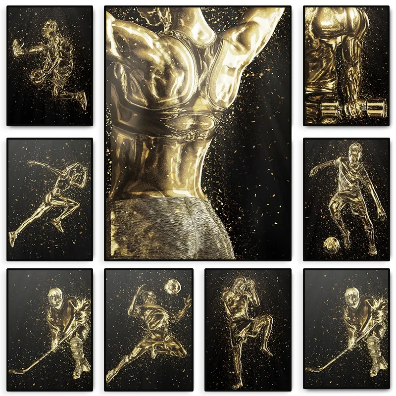 Bodybuilding Weibliche Goldene Statue Sport Poster Fitness Laufen Boxen Leinwand Malerei Wand Kunst ...