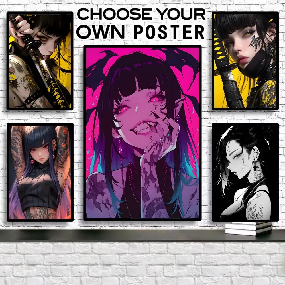 Cyberpunk Tattoo Girl Poster, wasserdicht, HD-Wandkunst, Aufkleber, selbstklebende ästhetische ...