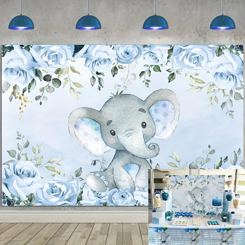 Blauer Elefanten-Hintergrund. Niedlicher Elefanten-Fotografie-Hintergrund für die Geburtstagsfe...