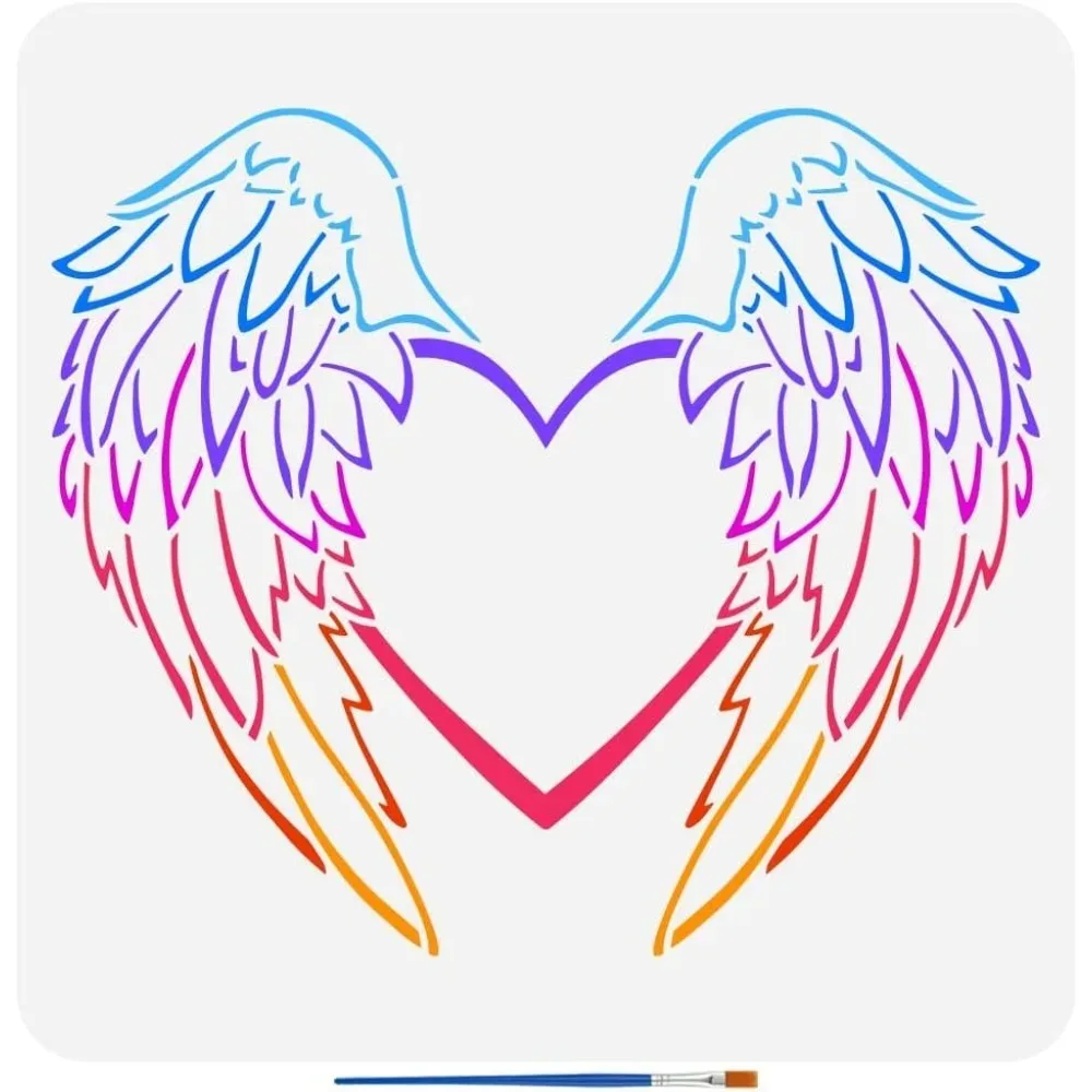 Flügelliebende Malvorlage mit Pinsel, 30 x 30 cm, Engelsflügel-Malvorlage, Fantasy-Thema-M...