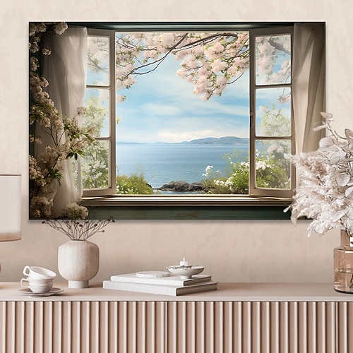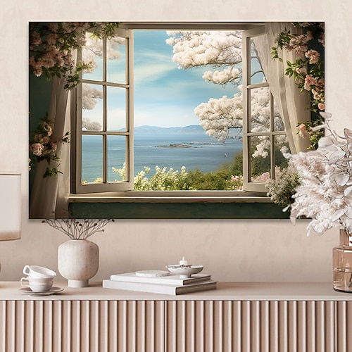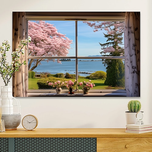 Landschafts-Wandkunst-Leinwand, falsches Fenster, Frühling, Ki...