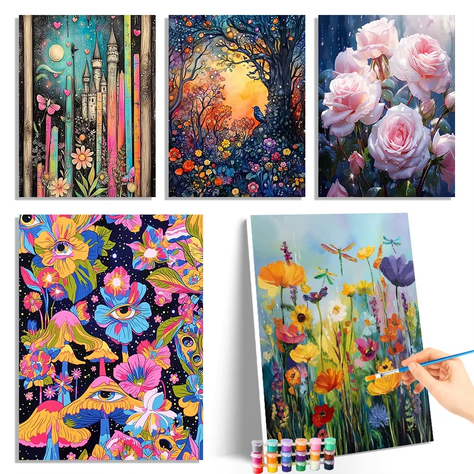 DIY ohne Rahmen, digitales Ölgemälde, Blumen in voller Bl...