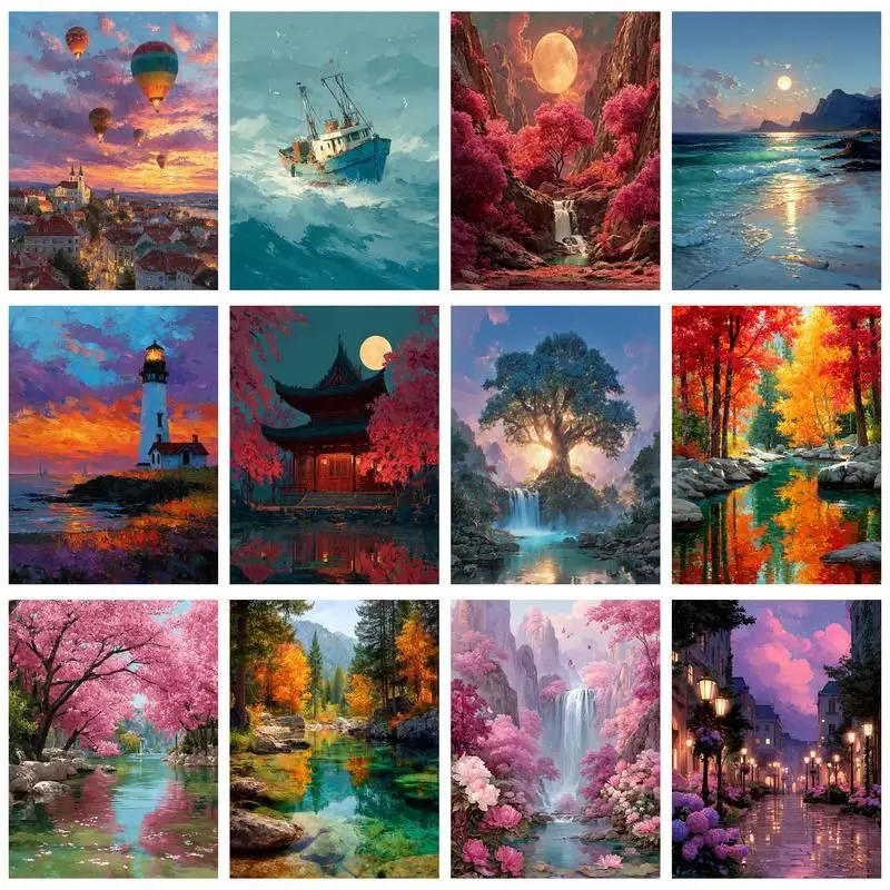 CHENISTORY Ölgemälde nach Zahlen, Baum, Landschaftsbausätze, Heimdekoration, Bild nac...