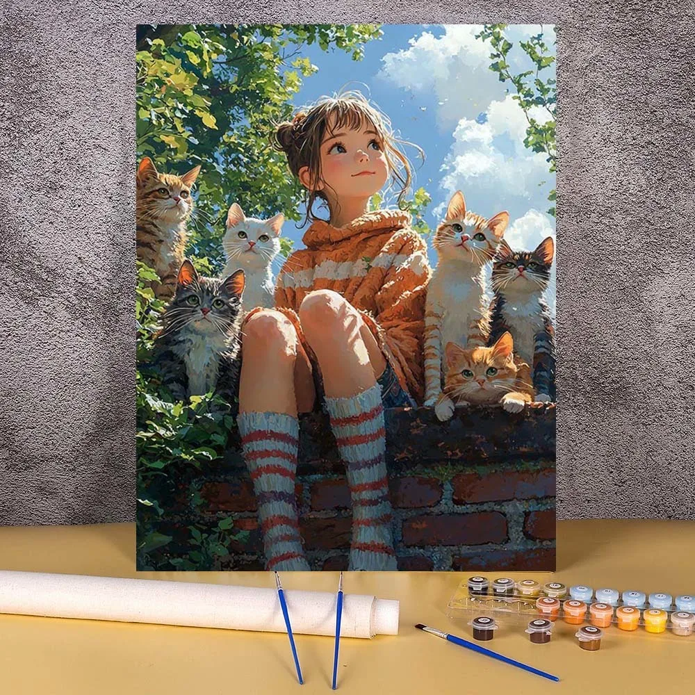 DIY Digitale Malerei Anime Malen Nach Zahlen Cartoon Katze Handgema...