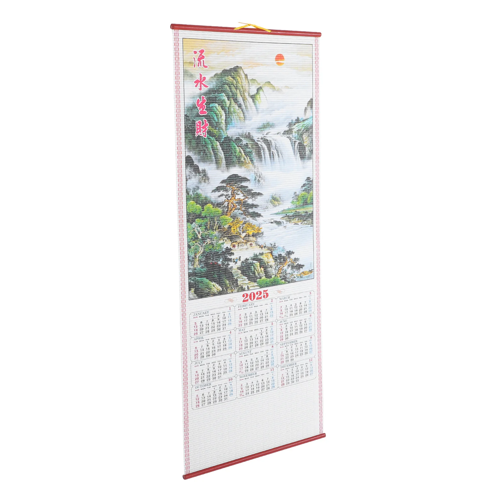 Hängender Schriftrollenkalender aus Rattanimitat 2025, Schlangenjahr, klar bedruckt, Monatskale...