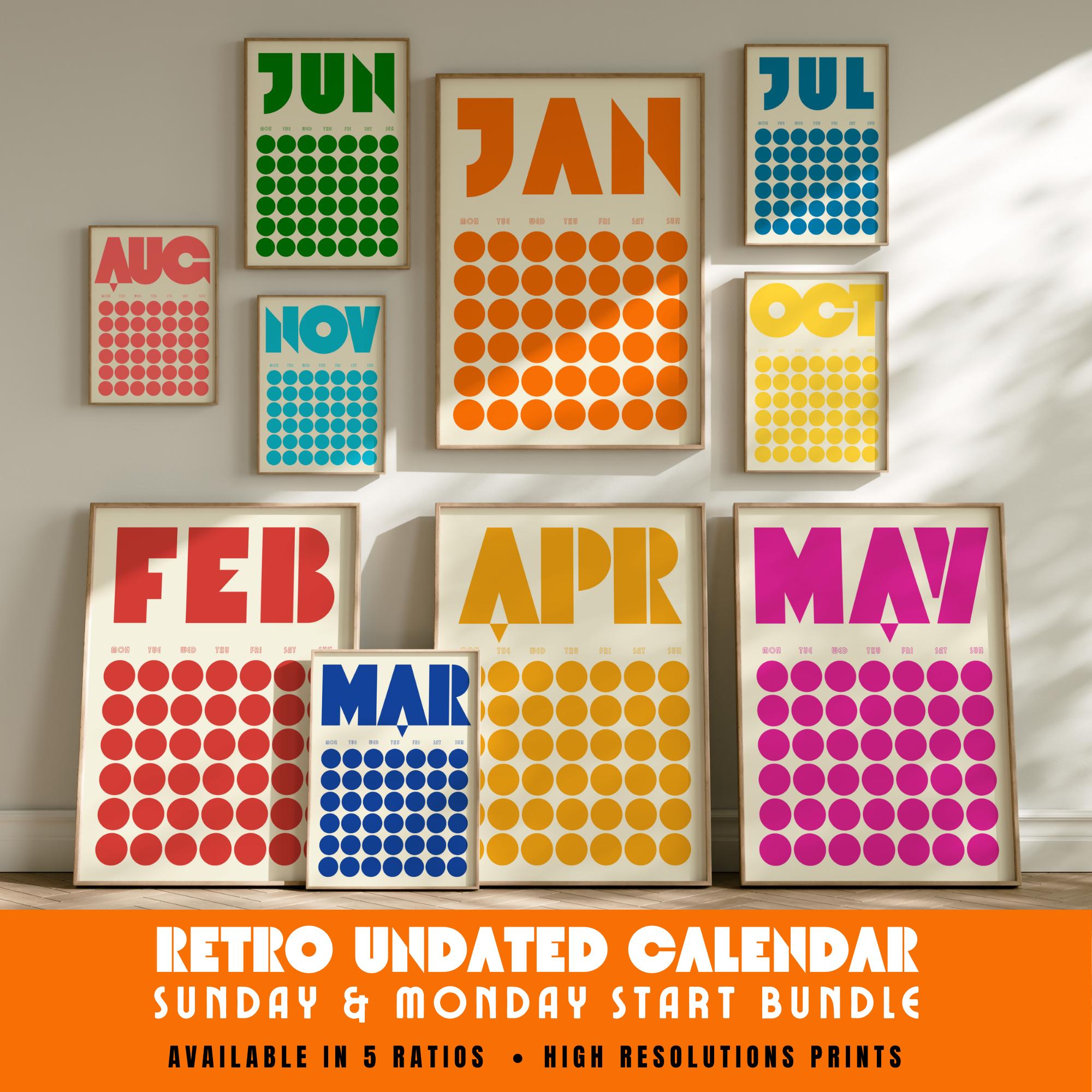 Undatierter Kalender Groß Wand Retro Kalender 2026 Monatskale...