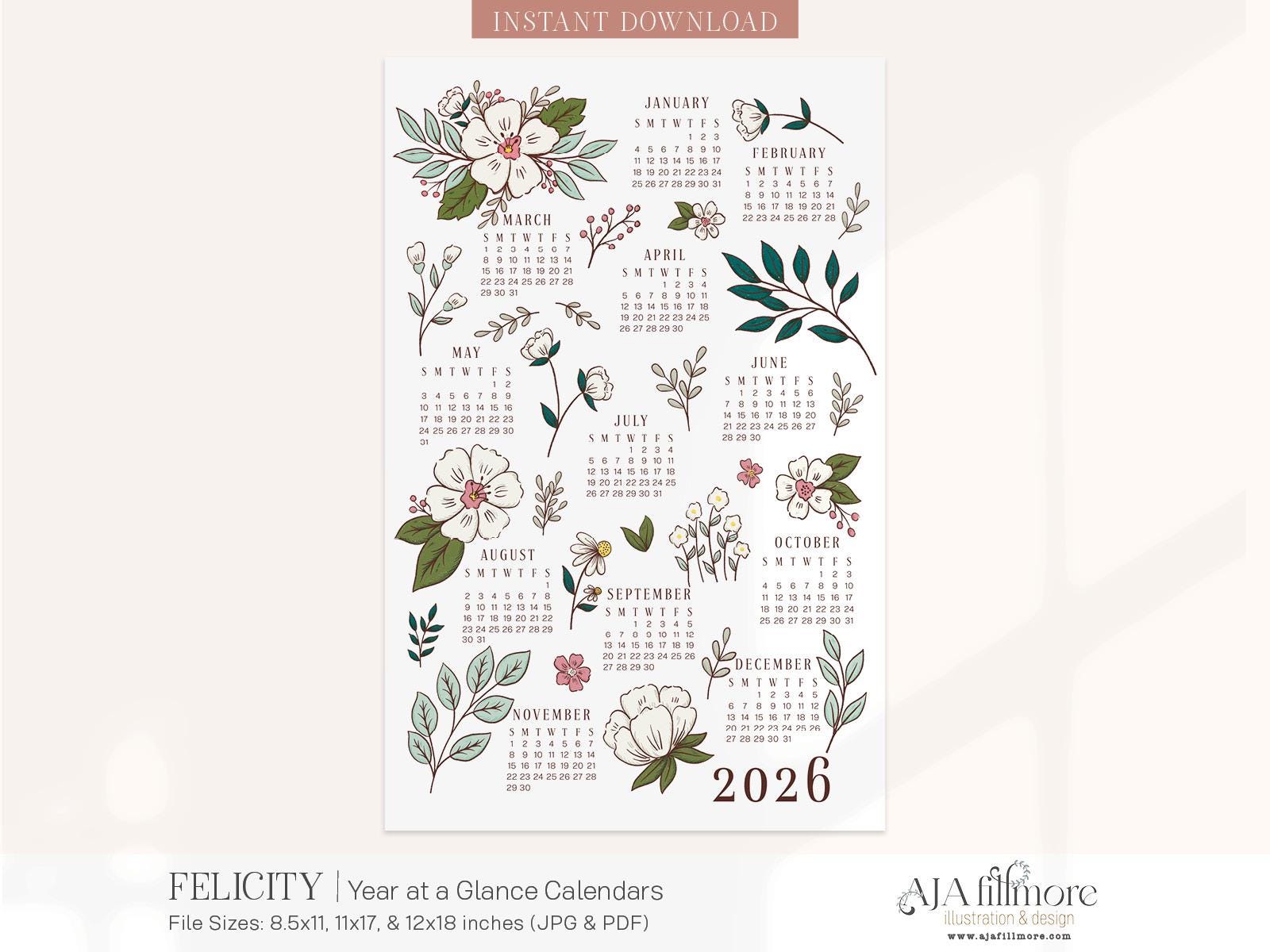 2026 Jahr auf einen Blick Kalender, Wandkalender 2026, Digitaler Wa...
