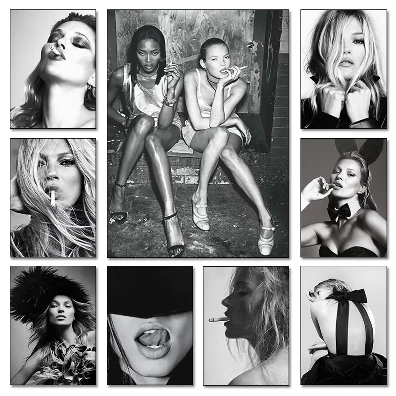 Vintage Sexy Supermodel Kate Moss Poster Rauchen Leinwand Malerei Druck Wand Kunst Feministische Mod...