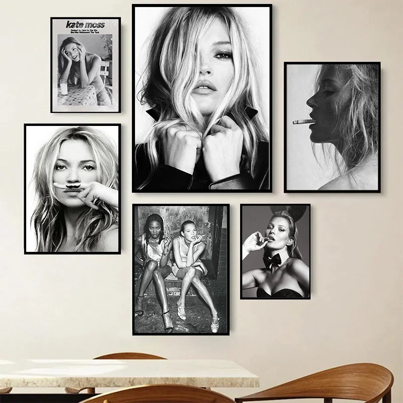 K-Kate Moss Mode Schwarz-Weiß-Poster Kunst mit Drucken Zuhause Schlafzimmer Wohnzimmer Dekorat...