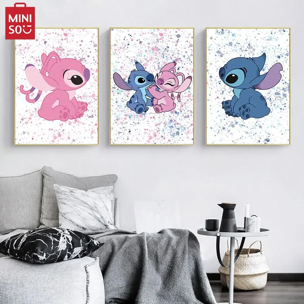 Lilo und Stitch Aquarelldrucke Stich Leinwand Malerei Poster blau und rosa Kunstbild für Kinder...