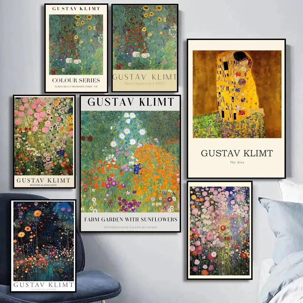 1 STÜCK Gustav Klimt Blumengarten Sonnenblume Poster Selbstkle...