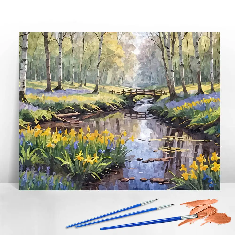 DIY Malen nach Zahlen Landschaft Digitales Ölgemälde Waldbaum Zeichnen nach Zahlen Flussbr...