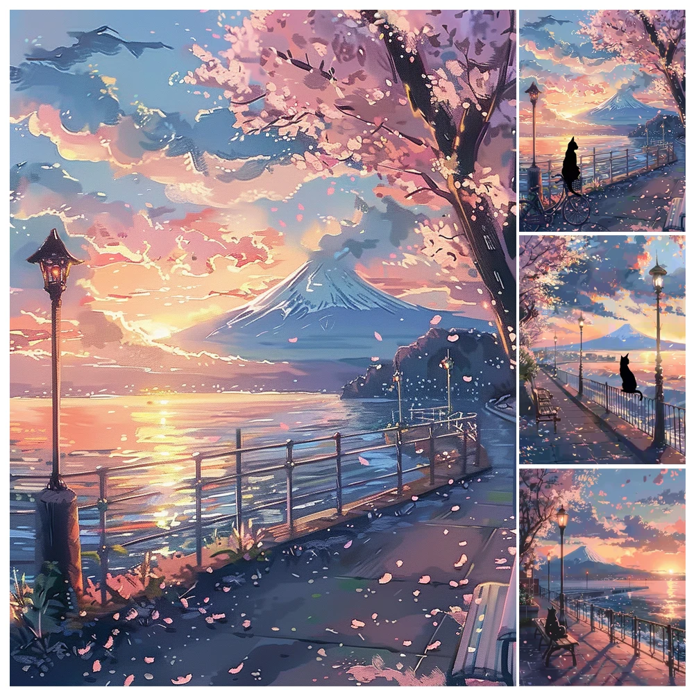 Hand malerei Sonnen untergang Katze auf dem Strand Landschafts malerei von Zahlen Kit DIY Kunstwerk ...