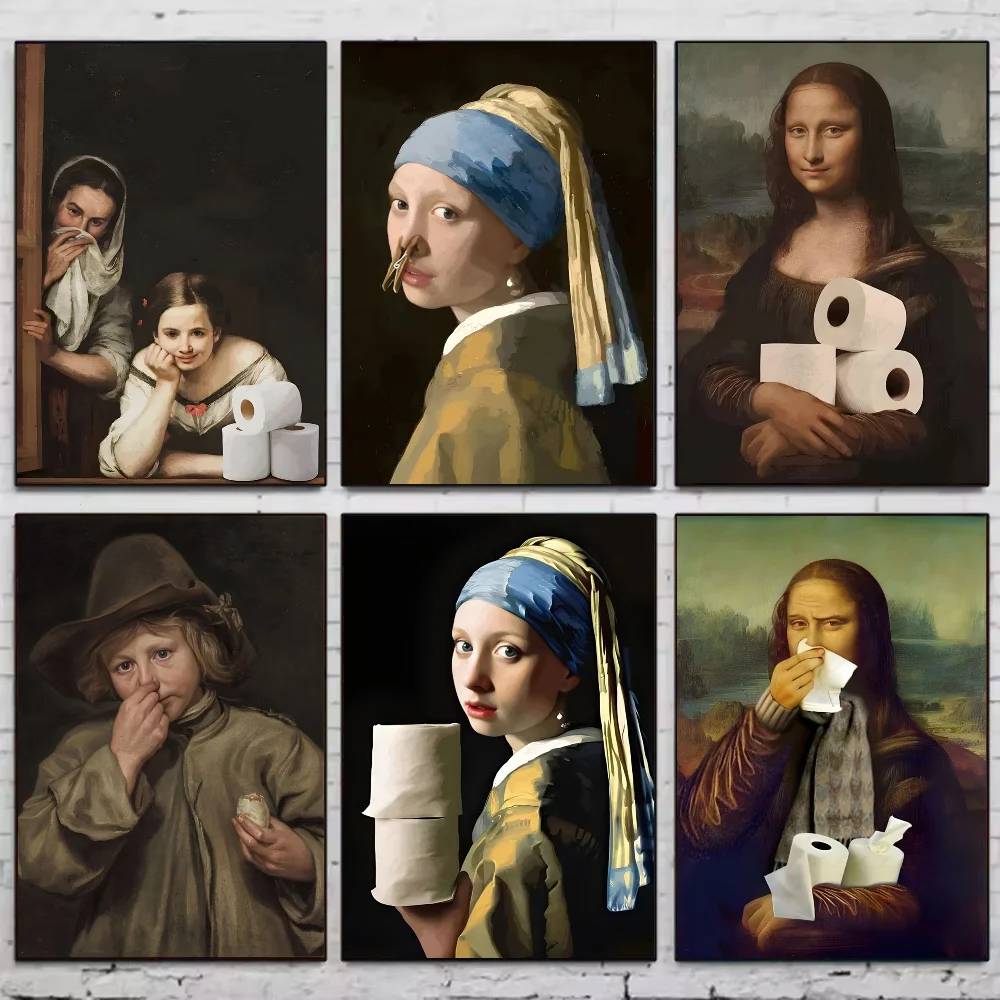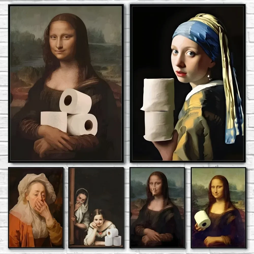Lustige Mona Lisa Badezimmer Poster Dekor Vintage Leonardo da Vinci Berühmte Druck Toilettenpap...