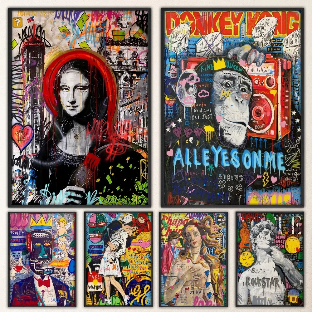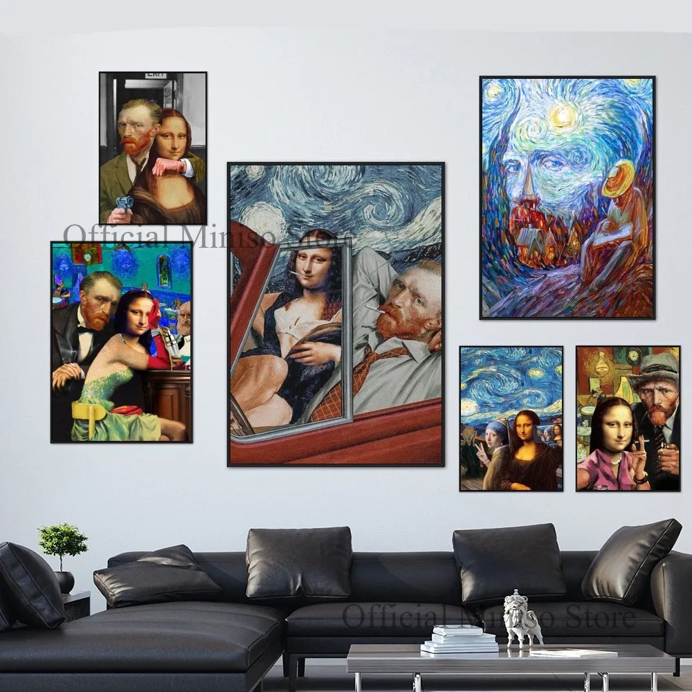 Lustige abstrakte van gogh und Freunde mona lisa selbst klebende Kunst plakat wasserdichte Papier au...