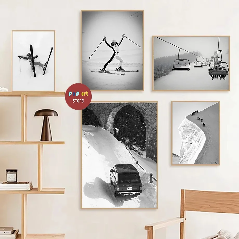 Leinwand Malerei Retro Skifahren Poster Schwarz Und Weiß Vint...