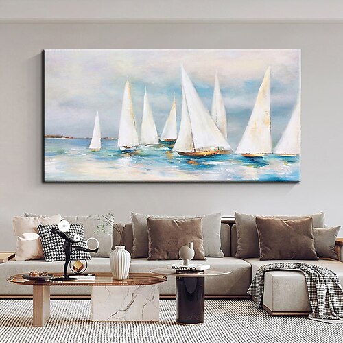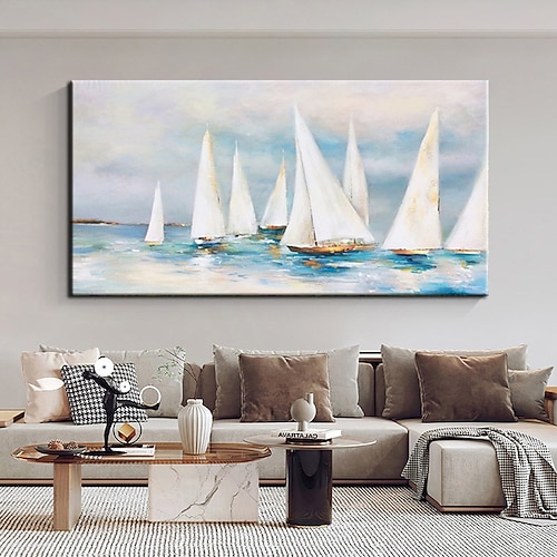 Großes handgemaltes Wandkunst-Segelboot-Party-Ölgemä...