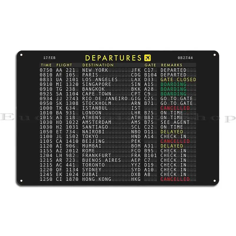 Flight Departures Split Flap Reader Board Metallplakette Poster Club Charakter Kino Create Club Blec...