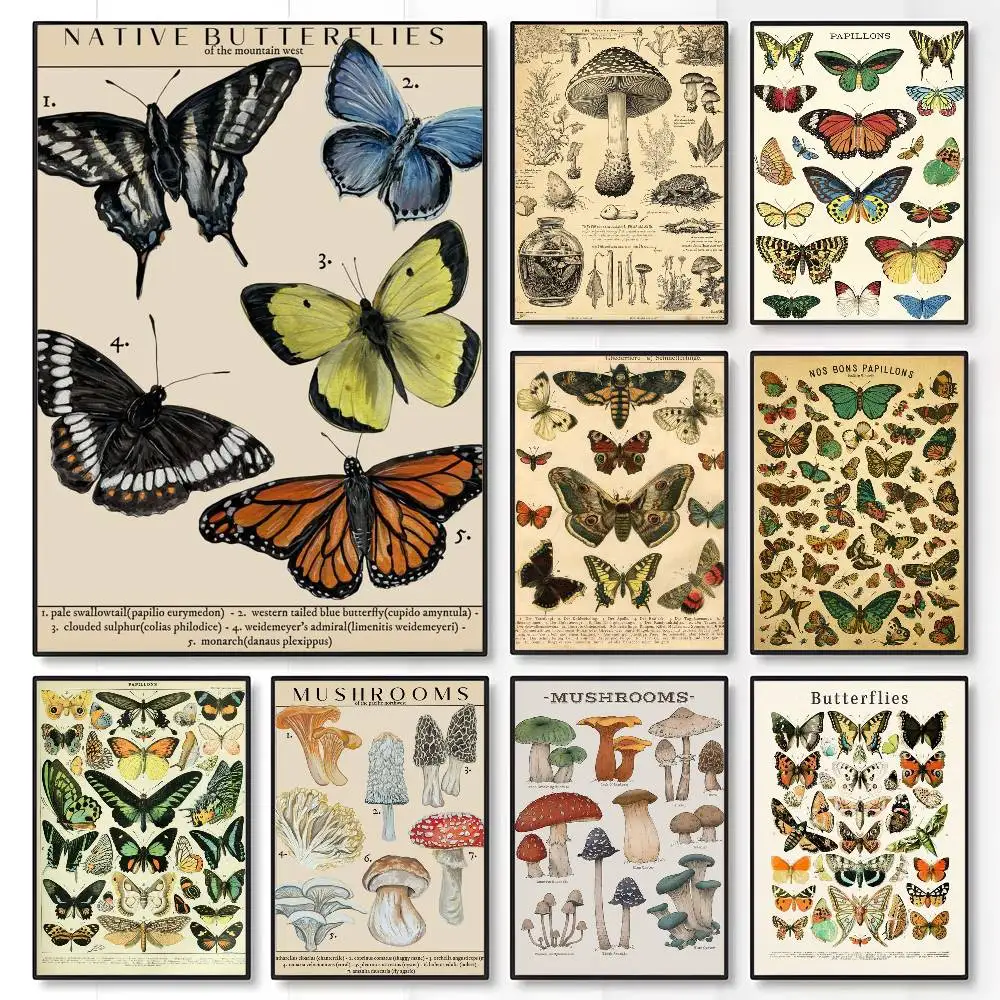 Schmetterling, Insekt, Blume, Pilz, Poster, botanisch, pädagogisch, Kraftpapier, DIY, Vintage, ...