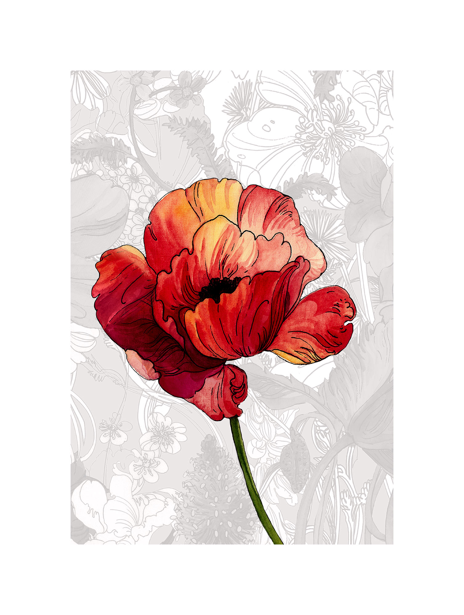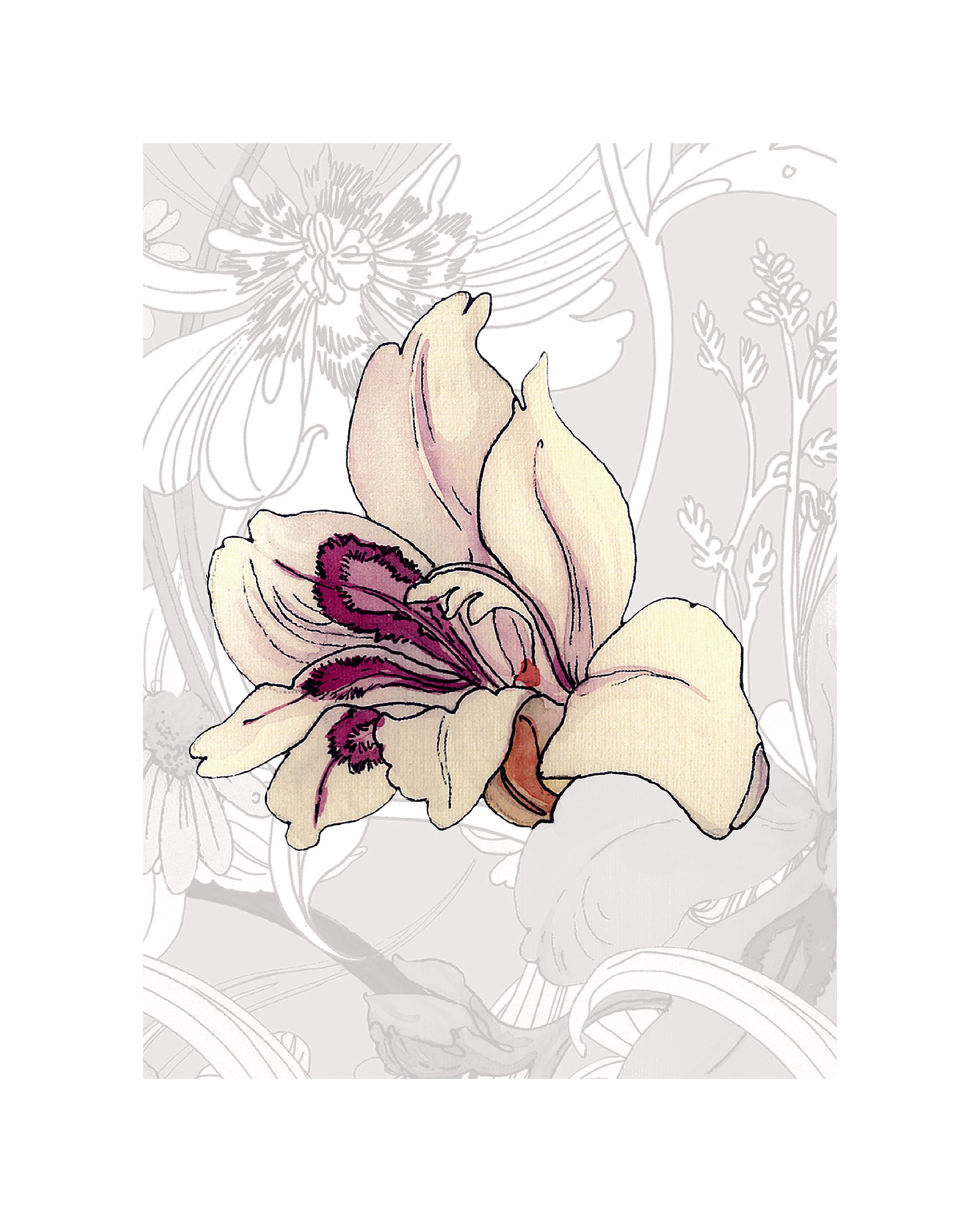 Die Zeichnung der wunderschönen Blütenpracht ist in dezenten Nuancen gehalten und versch&o...