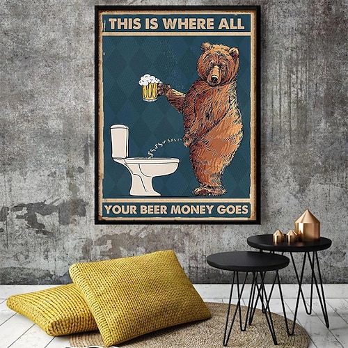 Grumpy Bear Drinking Beer Prints Poster Abstract Wall Art Canvas Mo...
