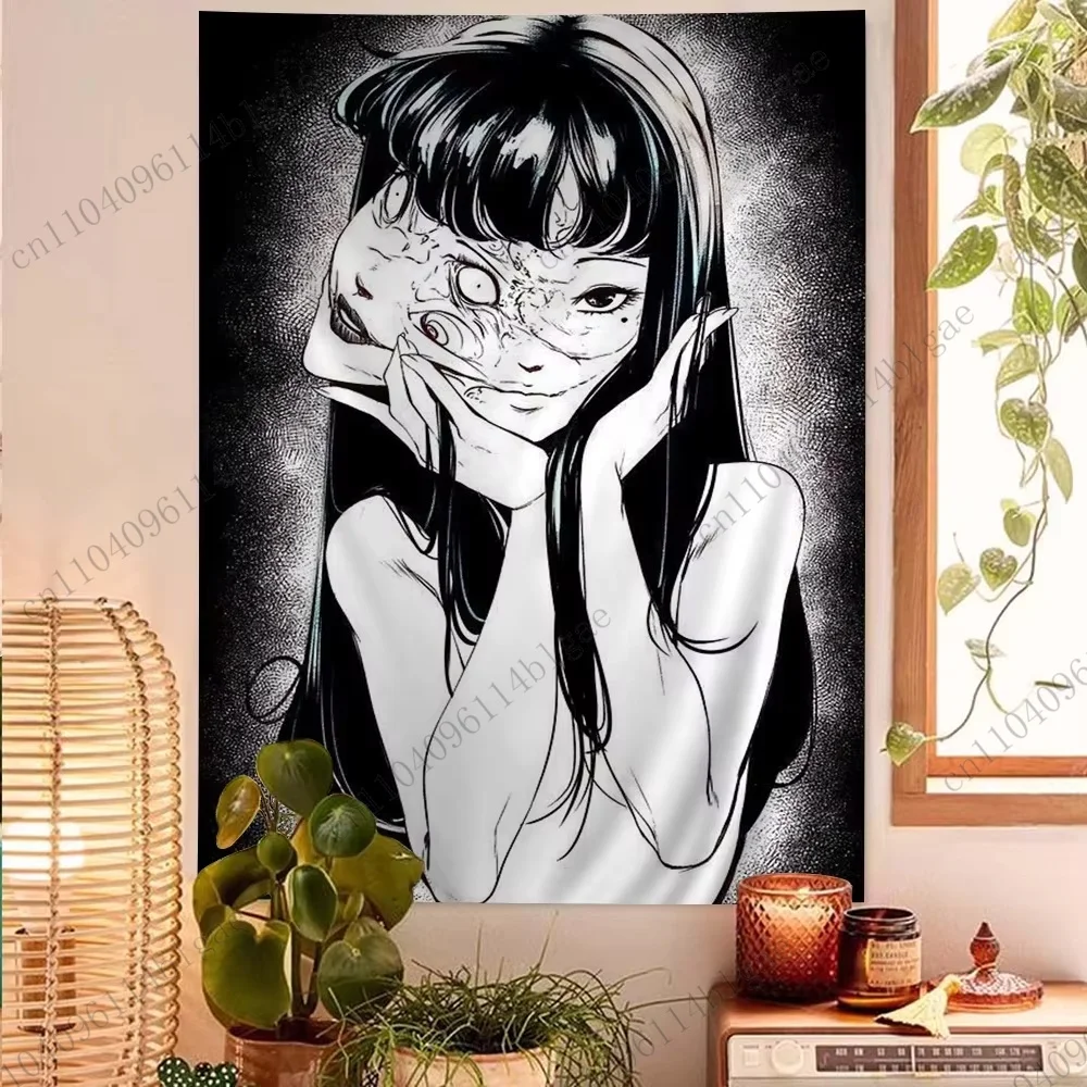 Monochromer Anime Ghost Face Wandteppich, geheimnisvoller Anime Spi...
