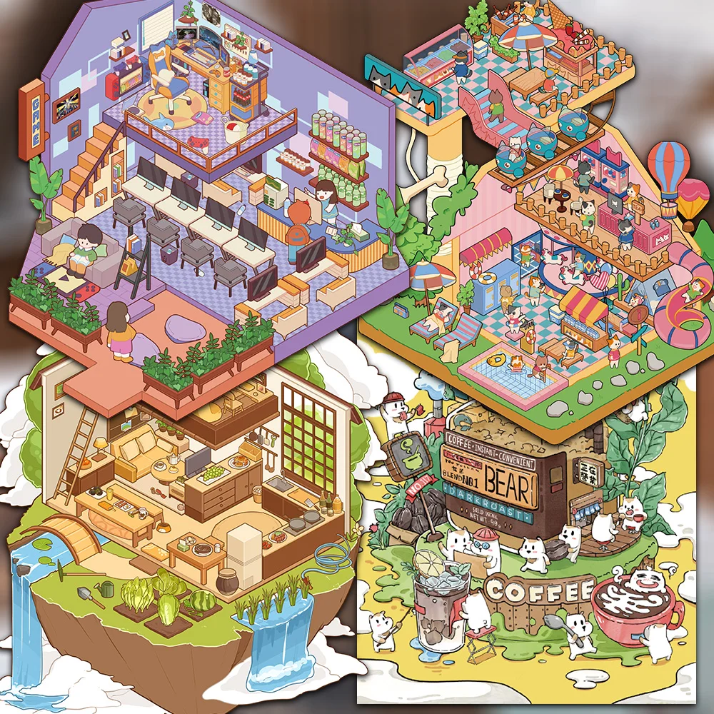 3PCS Internet Cafe/Sky Island/Xiong Xiong Kaffee Flasche Architektu...
