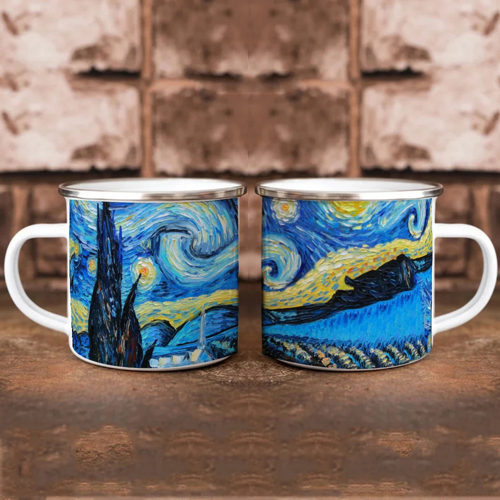 Van Goghs Ölgemälde der sternen klaren Nacht Emaille Camping becher 12oz nach Hause Tee ta...