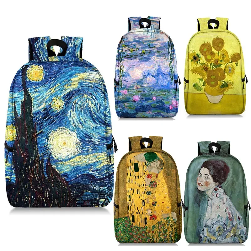 Ölgemälde von Claude Monet Gustav Klimt van Gogh Rucksack Sternennacht Sonnenblume Kuss Sc...