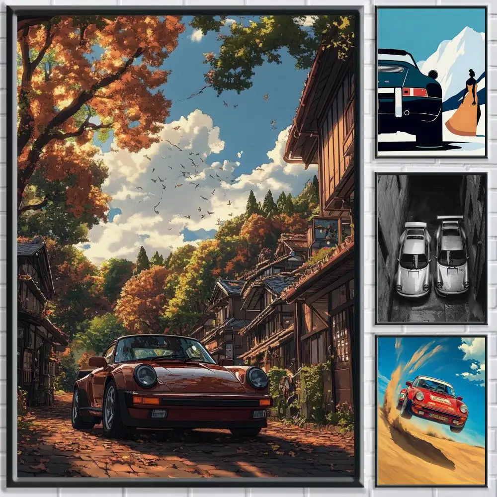 Klassisches Retro-Auto-Alpenantrieb-Poster, perfekter Weltraum-Aufkleber, selbstklebend, für B&...