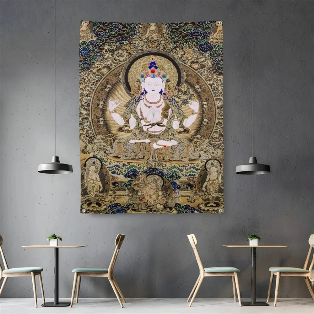 Tibetischer Thangka Avalokiteshvara Wandteppich Buddha Dekor Mandala Poster Wandbehang Spirituelle M...