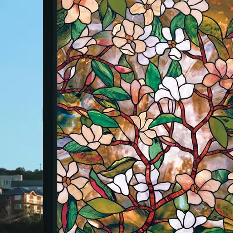 Fenster-Sichtschutzfolien-Aufkleber, Magnolien-Fensterfolie, Vinyl, für Glasfenster, Buntglas-F...