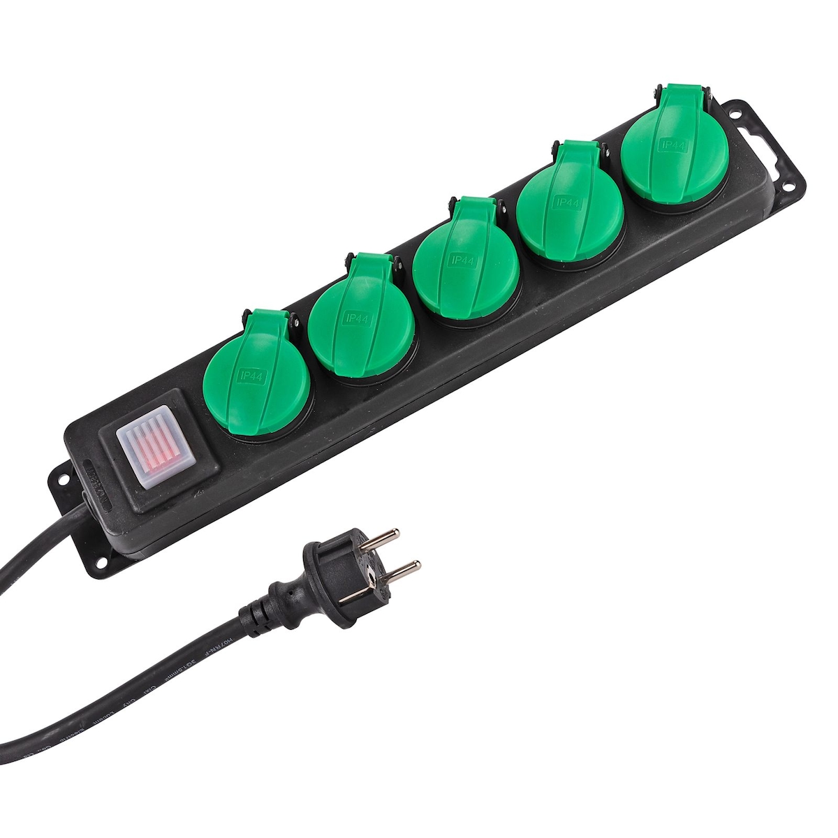 Steckdosenleiste aus Kunststoff mit Schutzkontakt-Winkelstecker. 6-fach Steckdosenleiste Kunststoff,...