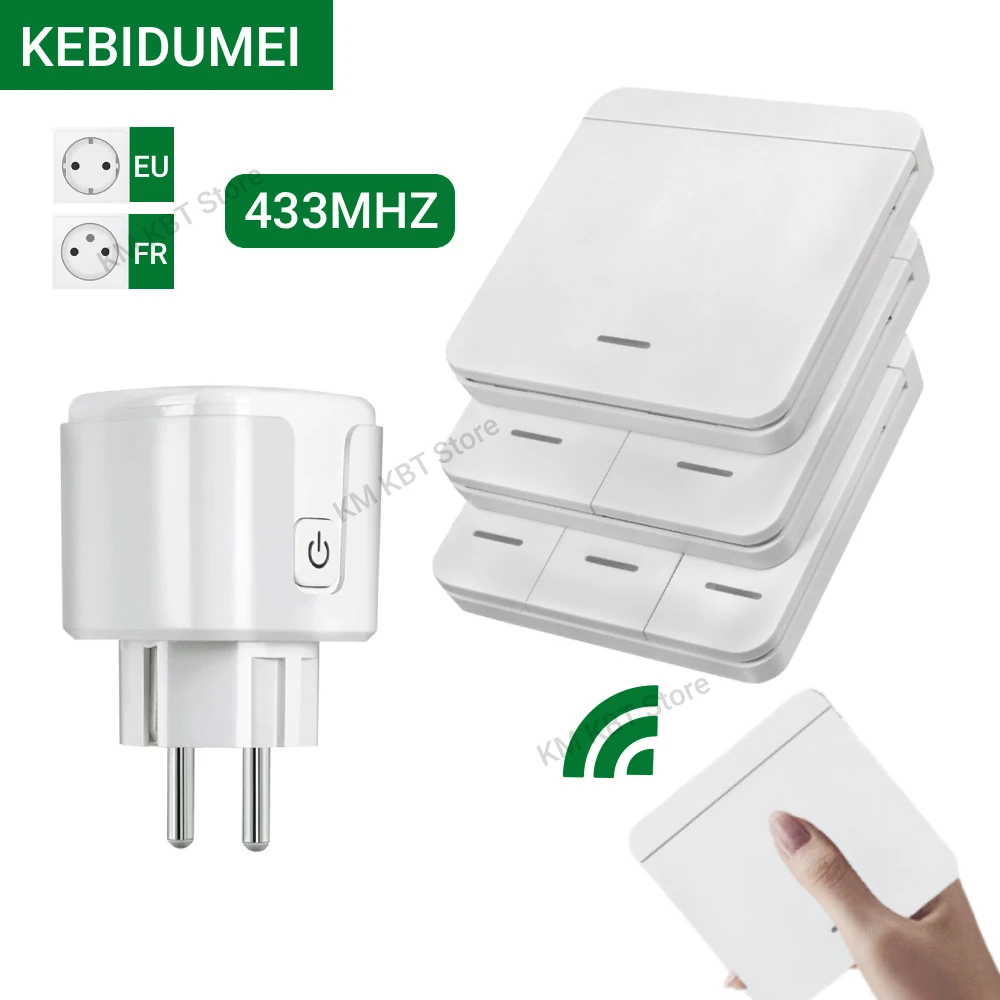 433MHz Kabelloser Steckdosenschalter EU FR Stecker 230V 220V 16A 86 Kabelloser Wandschalter mit Batt...