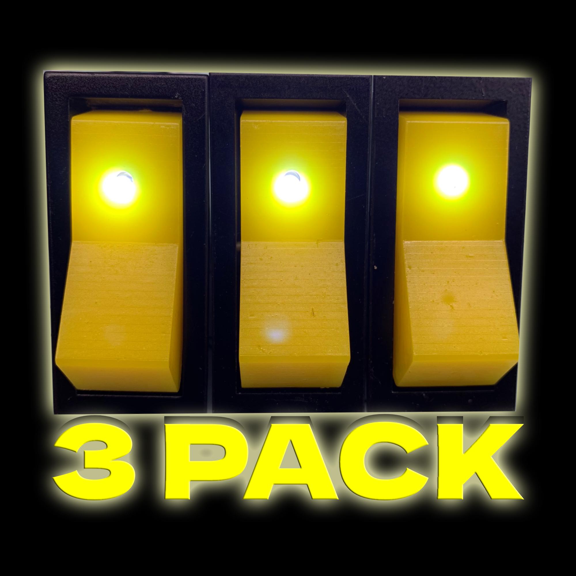 3er Pack Große Gelb und Schwarz Wippschalter mit LEDs