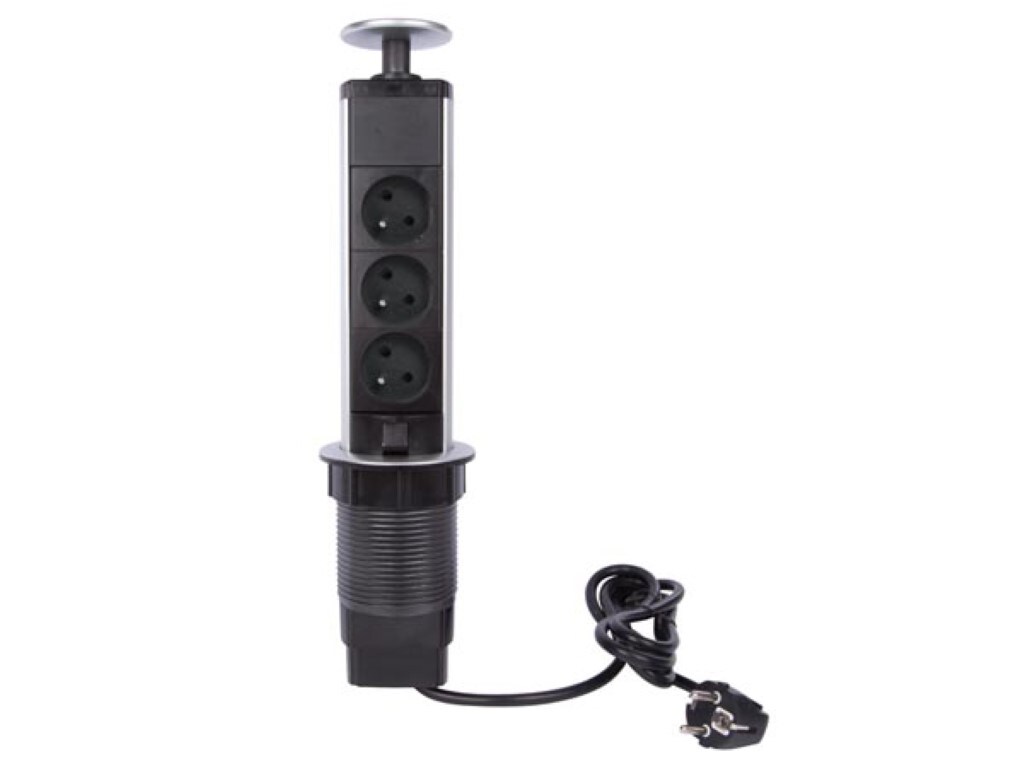 Perel Steckdosenturm, versenkbar, 3 Steckdosen Typ E, Montageloch 7...