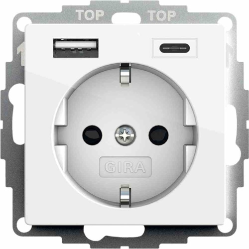 Gira System 55 Steckdose, 1f, reinweiß, glänzend, 1USB-A...